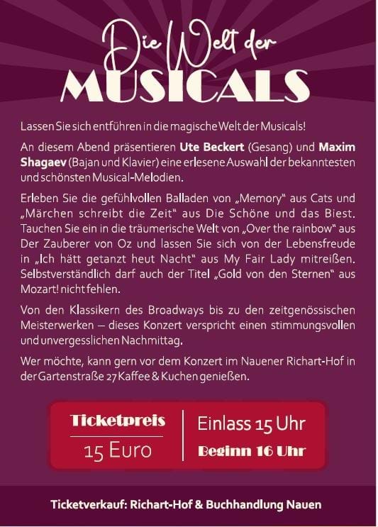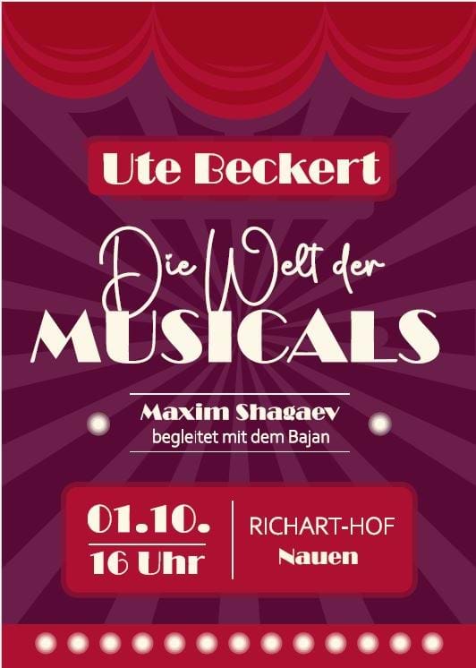 Ute Beckert führt Sie unter Begleitung von Maxim Shagaev mit dem Bajan durch "Die Welt der Musicals".