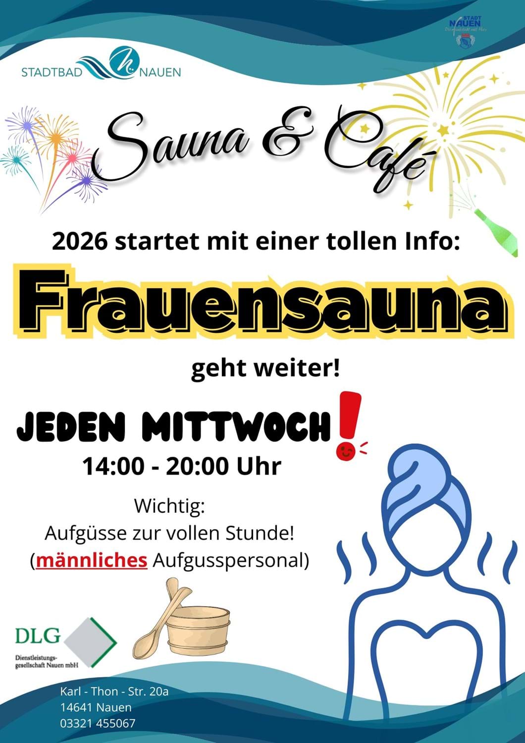 Jeden Mittwoch findet im Stadtbad Nauen die Frauensaune statt.