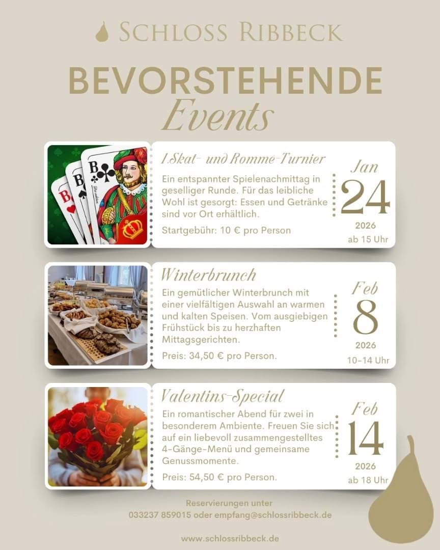 Anmeldung/Info: 033237 859015 oder empfang@schlossribbeck.de