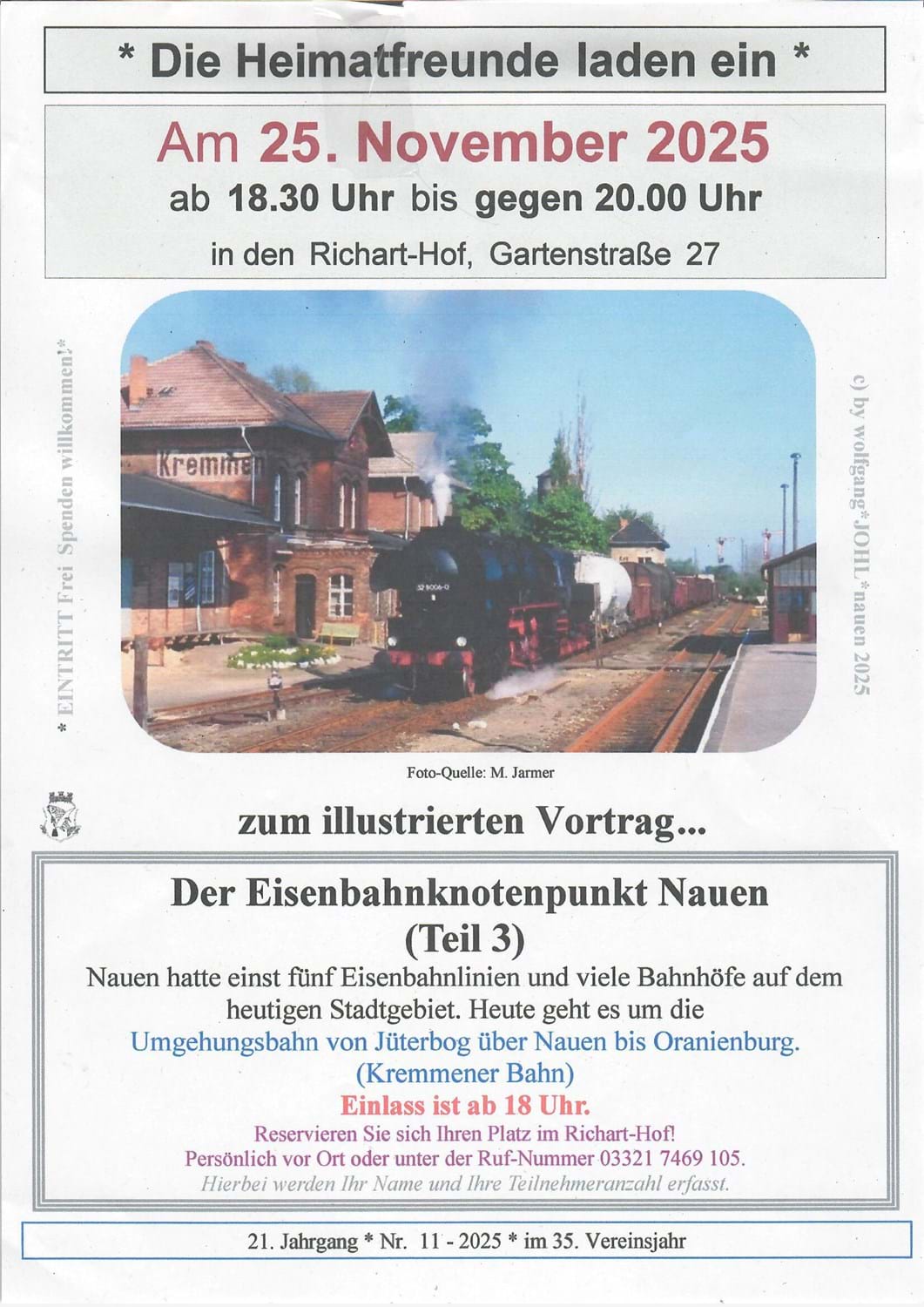 Bei diesem Vortrag geht es um die Umgehungsbahn von Jüterborg über Nauen bis Oranienburg (Kremmener Bahn)