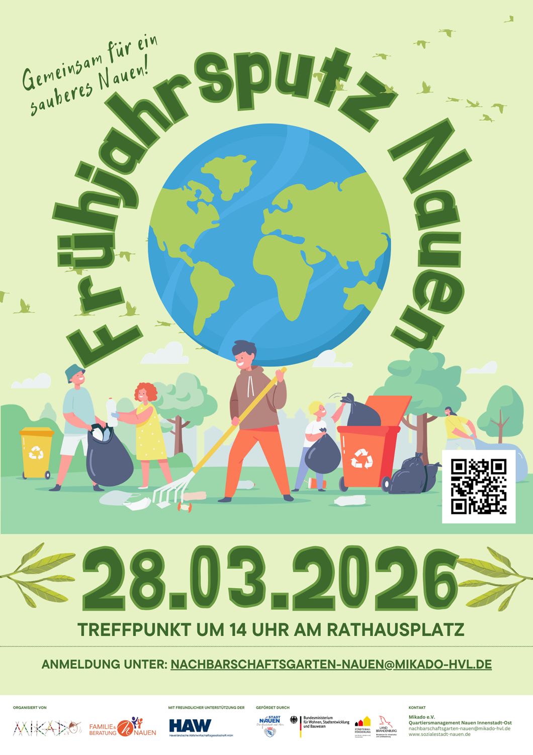 Eine neue Auflage der erfolgreichen Müllsammelaktion „Eine saubere Sache 2026“ steht bevor! Am 28. März 2026 ab 14 Uhr laden die Stadt Nauen, das Familien- und Generationenzentrum Nauen (FGZ) sowie Mikado e. V. als Träger des Quartiersmanagements Nauen Innenstadt-Ost alle Nauenerinnen und Nauener herzlich dazu ein, sich aktiv für eine saubere und lebenswerte Stadt zu engagieren.