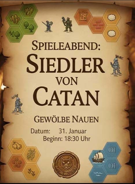 Anmeldung unter: https://www.das-gewoelbe.com/event-details/spieleabend-siedler-von-catan