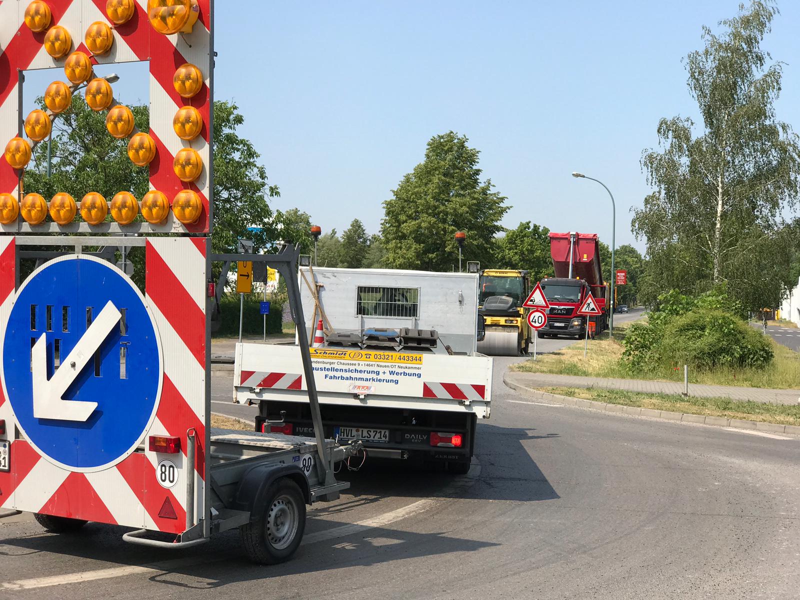 Hauplanweg (Ortsteil Börnicke), Alte Flatower Straße (OT Tietzow), Trappenweg (OT Waldsiedlung), Am Kuhdamm und die Brandenburger Straße (beide Nauen innerorts, in der Brandenburger Straße jedoch nur die Straßenrinne).