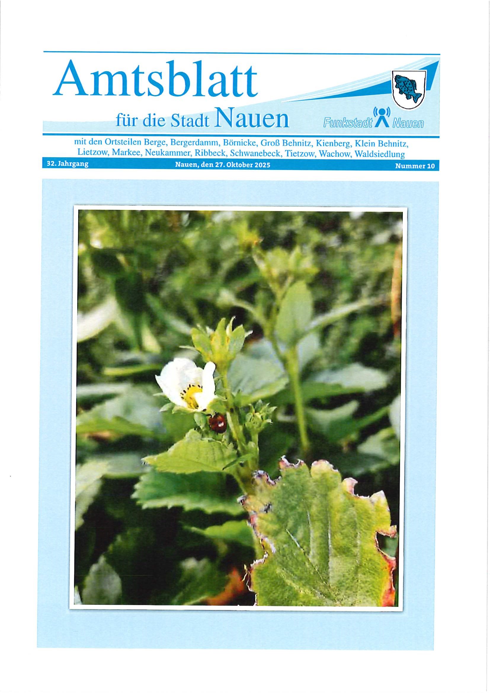 27. Oktober 2025 : Das Amtsblatt für die Stadt Nauen, Nr. 10 ist am 27. Oktober 2025 erschienen
