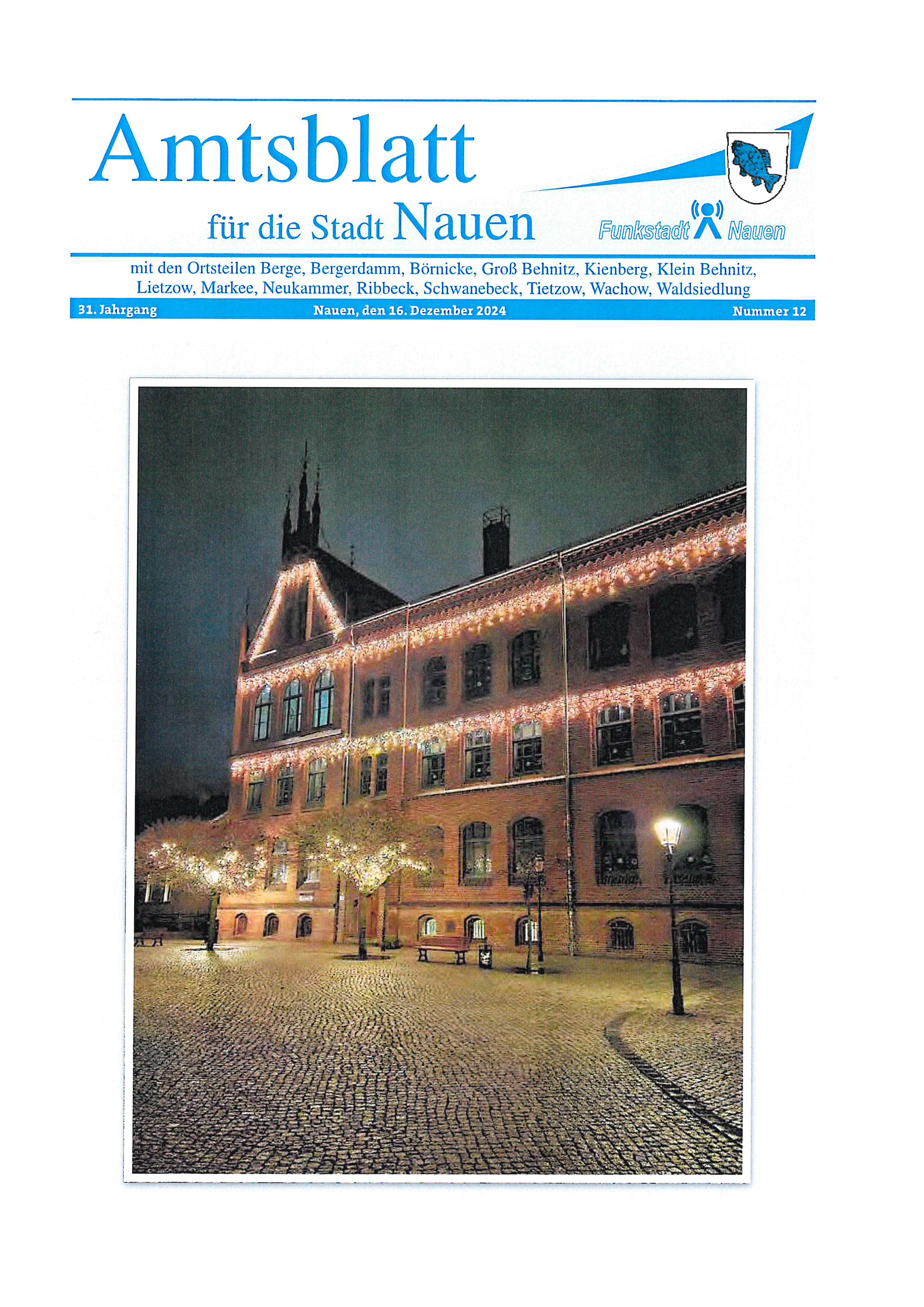 Das Amtsblatt für die Stadt Nauen, Nr. 12 ist am 16. Dezember 2024 erschienen