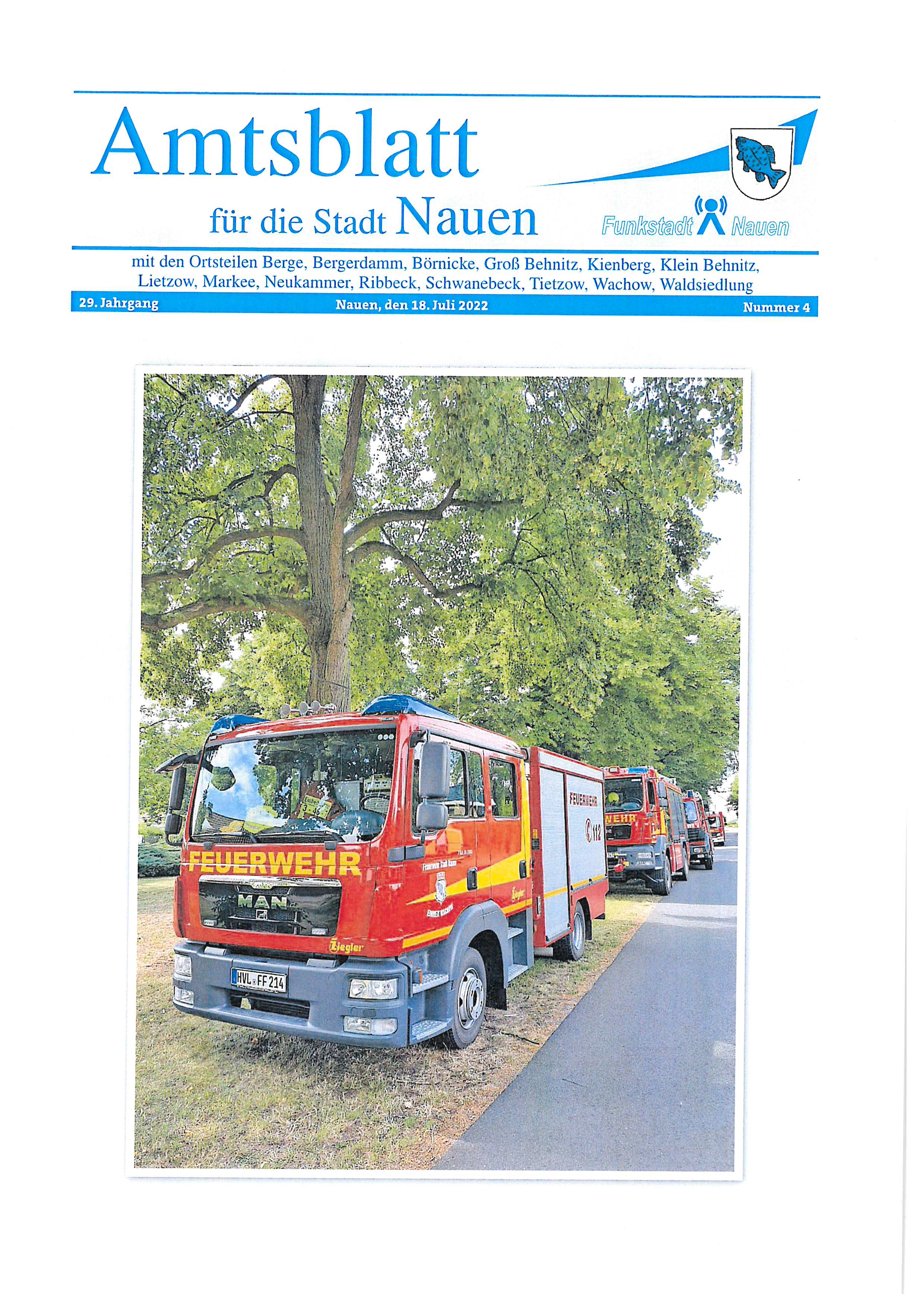 18. Juli 2022 : Das Amtsblatt für die Stadt Nauen, Nr. 4 ist am 18. Juli 2022 erschienen.