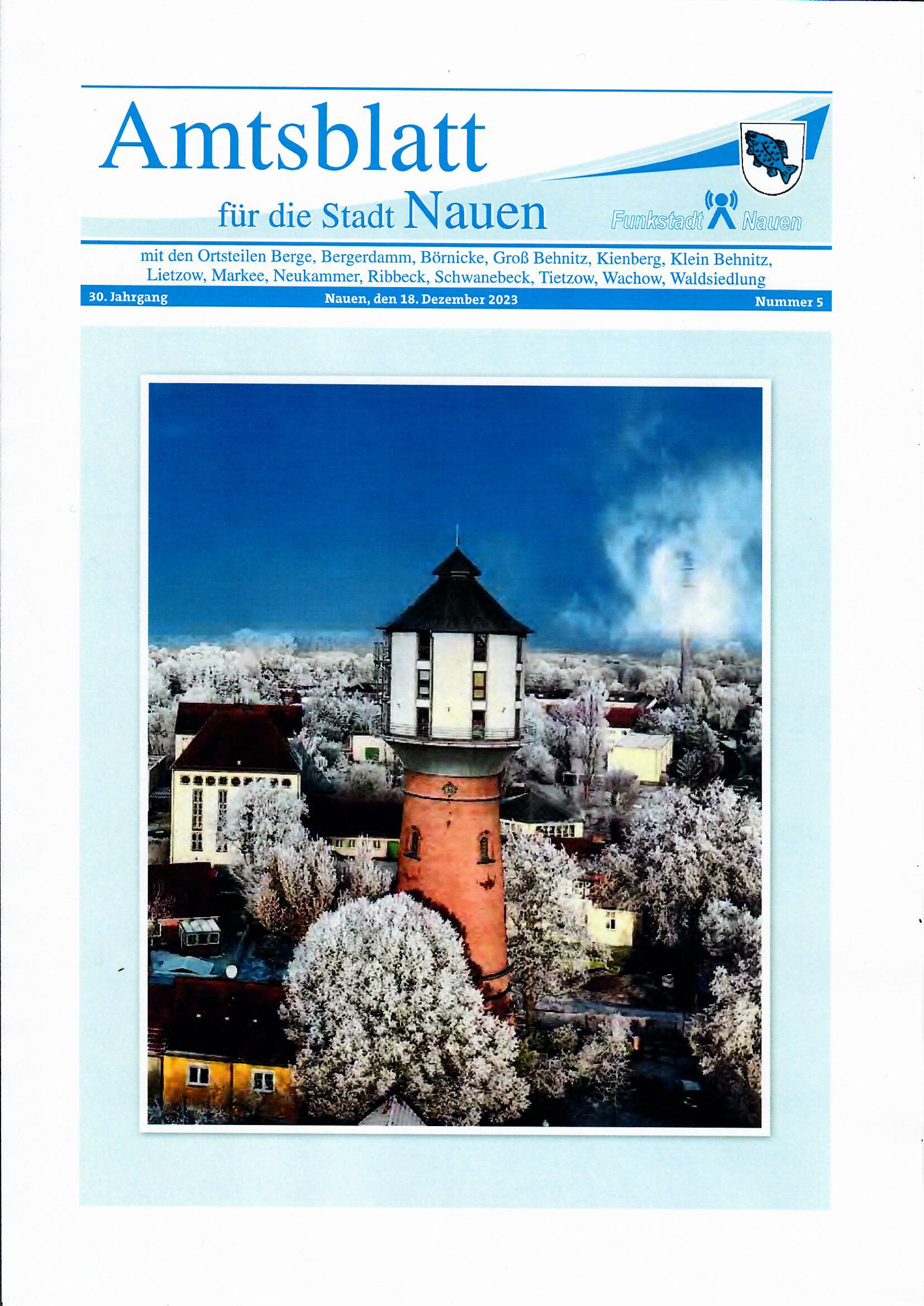 Das Amtsblatt für die Stadt Nauen, Nr. 5 ist am 18. Dezember 2023 erschienen