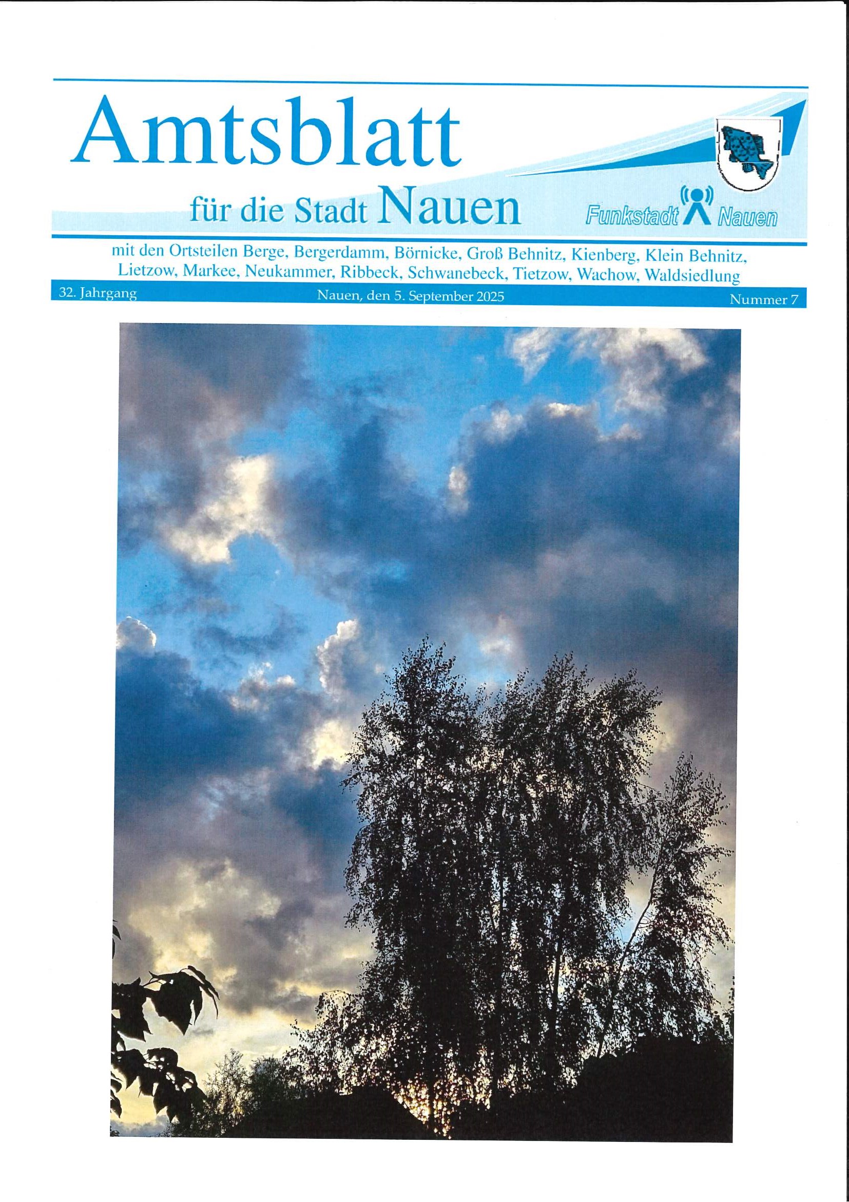 Das Amtsblatt für die Stadt Nauen, Nr. 7 ist am 5. September 2025 erschienen