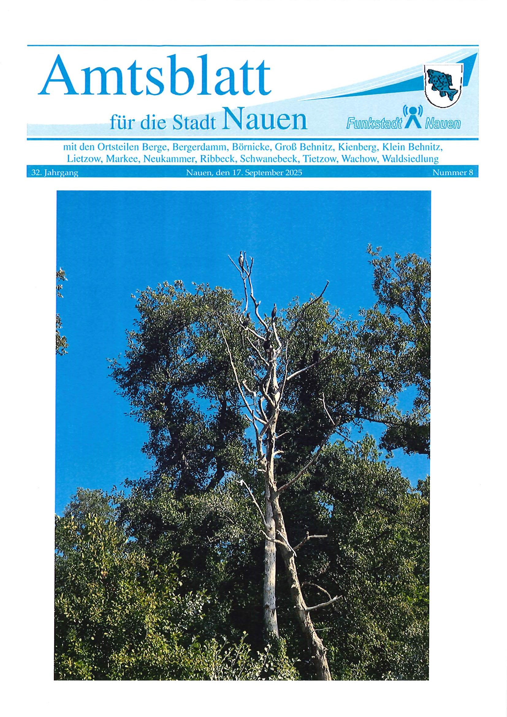 Das Amtsblatt für die Stadt Nauen, Nr. 8 ist am 17. September 2025 erschienen