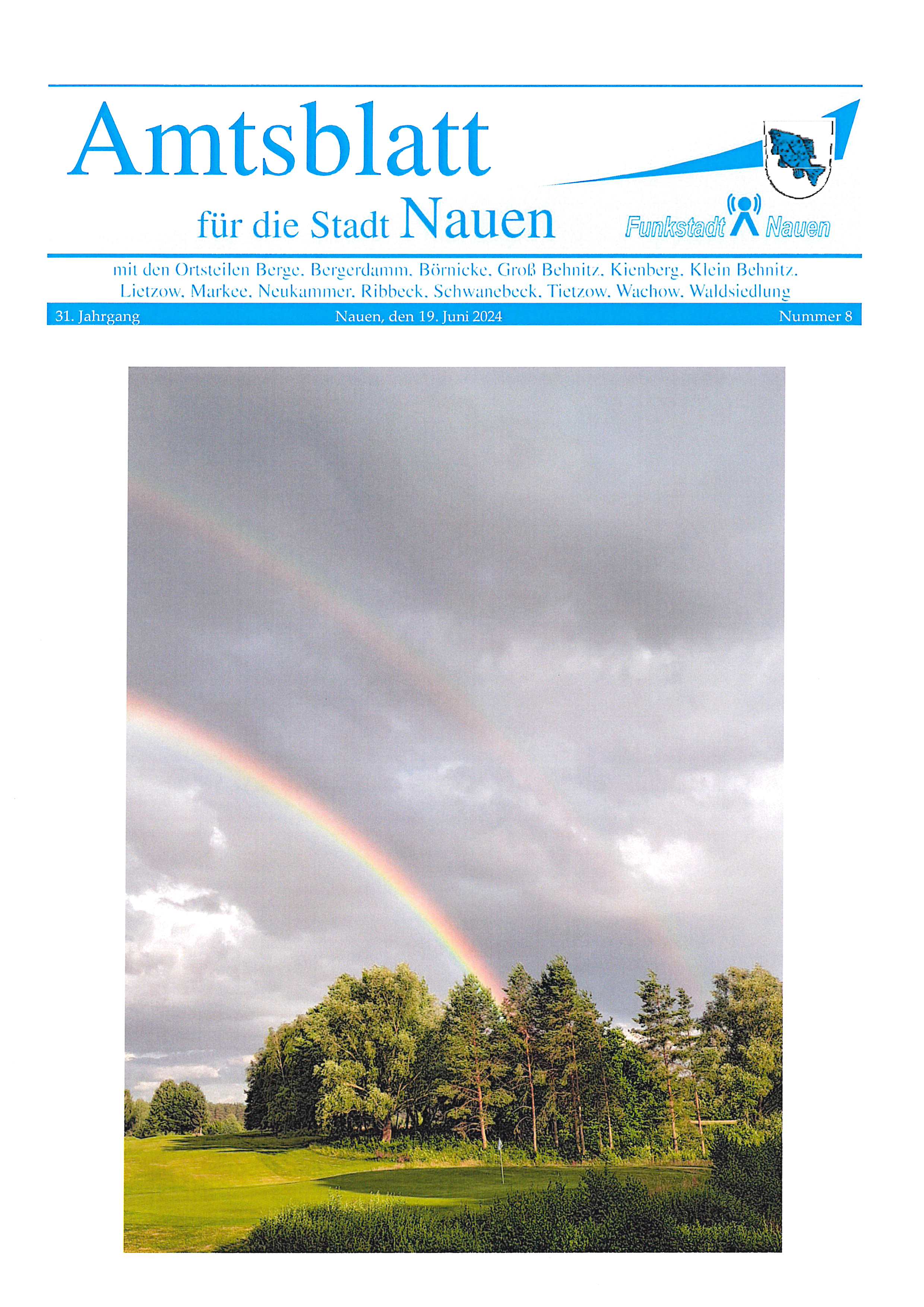Das Amtsblatt für die Stadt Nauen, Nr. 8 ist am 19. Juni 2024 erschienen