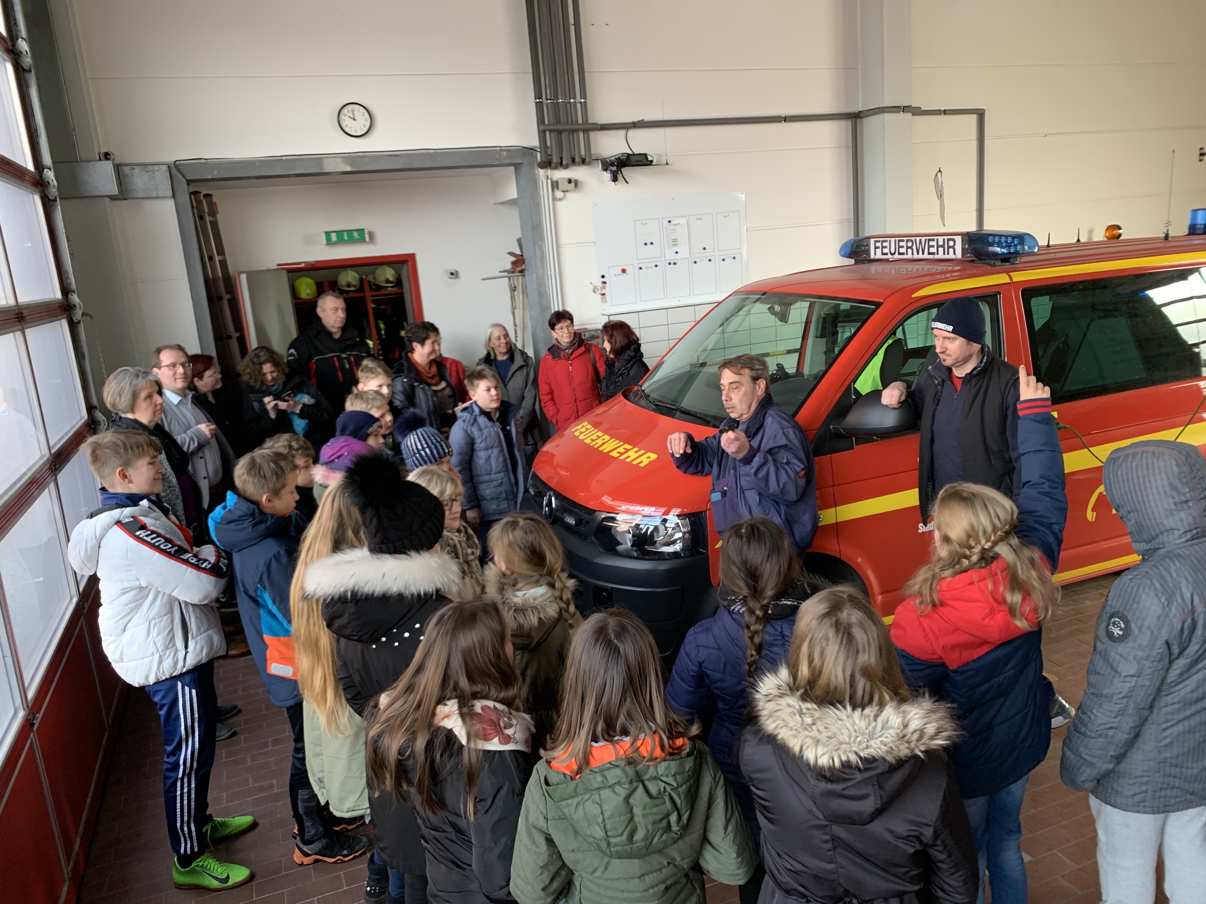 Der Besuchertross zog dann gemeinsam mit dem Bürgermeister zum Büro von Jörg Meyer, dem Stadtwehrführer der Nauener Feuerwehr. Er gab den Kids einen Einblick in die die vielseitigen Aufgaben der Feuerwehr, von denen auch die Fotogalerie im Gebäudeflur Geschichten zeugte. Gerätewart Thomas Dauter öffnete sogar zur Freude der Schüler die Türen zweier Hightech-Einsatzfahrzeuge, die vielseitig genutzt werden können.