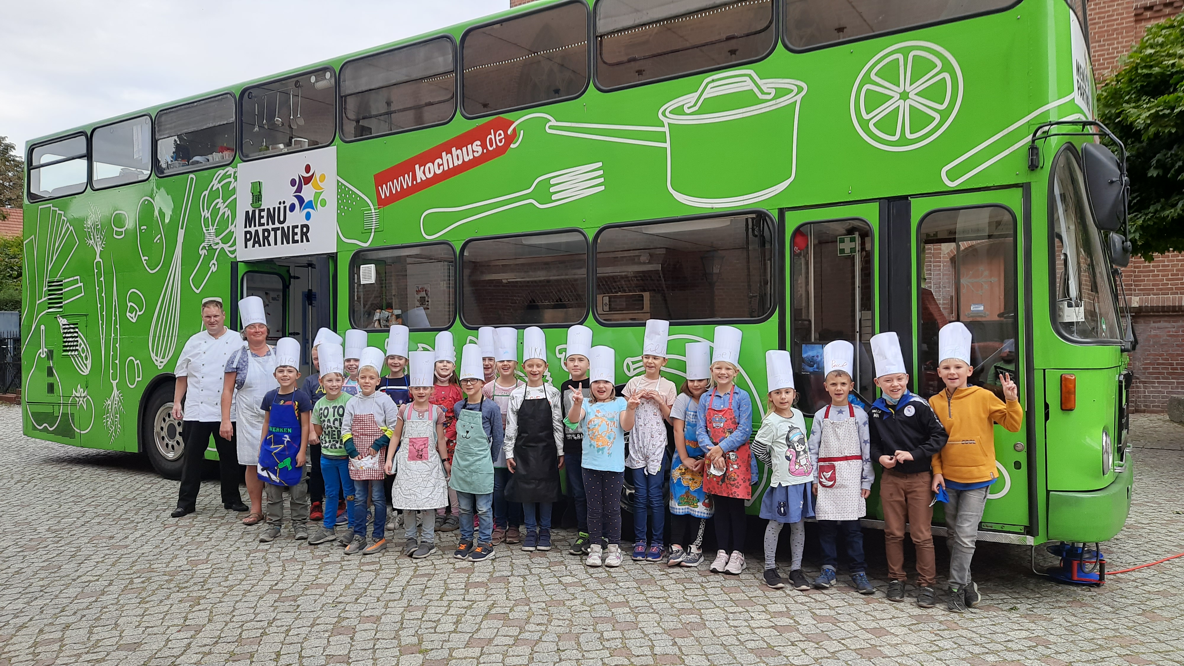 Der umgebaute Doppeldecker tourt seit rund zwölf Jahren durch Deutschland. Der Kochbus ist eine Projektinitiative der Menüpartner GmbH, die sich unter anderem an Kindertagesstätten und Schulen richtet. Unterstützt wurde diesmal der Kochbus von der BKK VBU.
