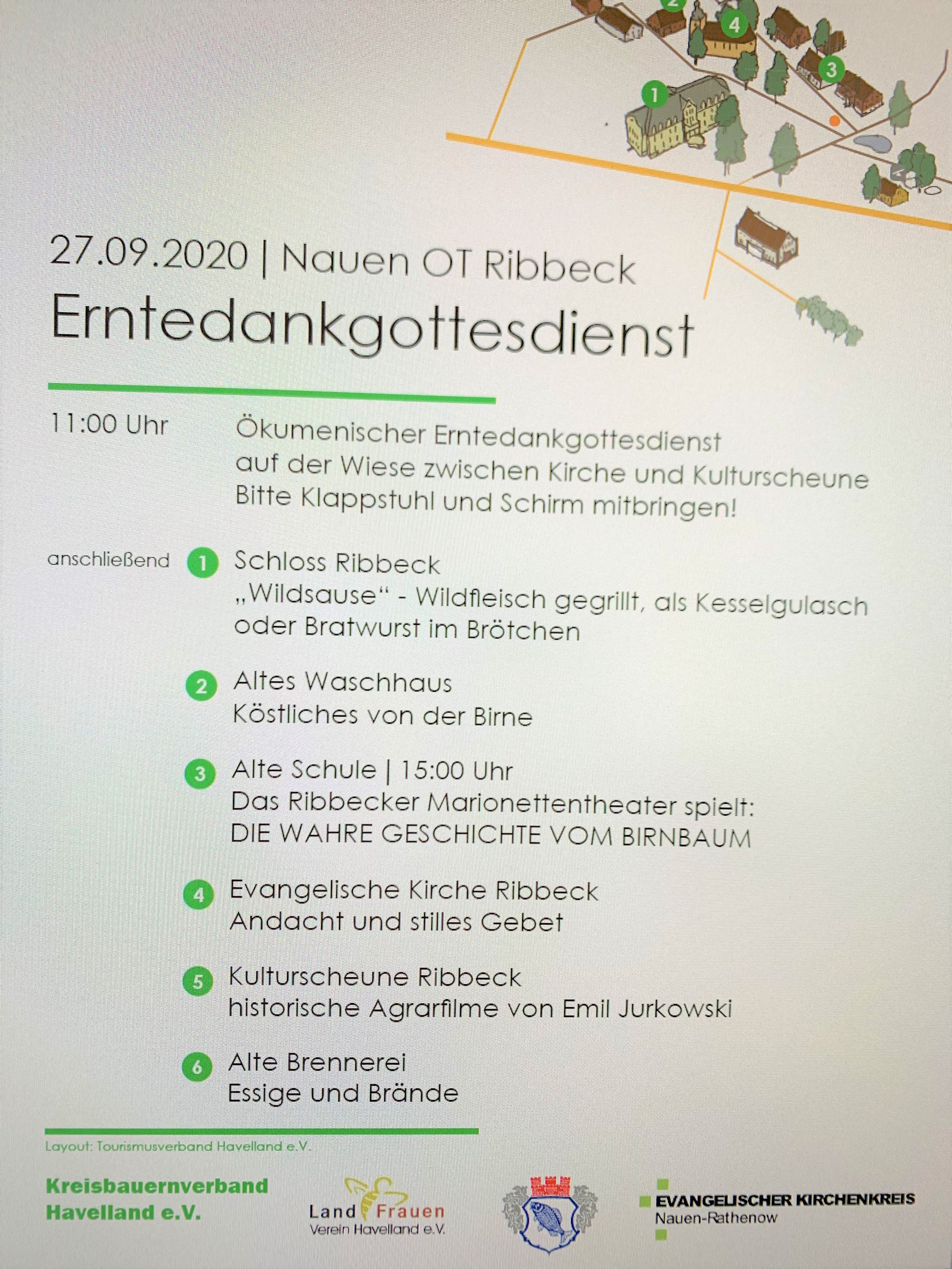 Ökumenischer Erntedankgottesdienst am 27. September um 11 Uhr in Ribbeck