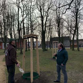 Die Maßnahme ist noch nicht abgeschlossen, da Restleistungen erst bei den erforderlichen Witterungsbedingungen erfolgen können“, erläuterte Bürgermeister Manuel Meger (LWN) am Dienstag bei einem Treffen mit Sören Hobohm von der Nauener Baumschulen GmbH, die am 1. Februar ihr 30-jähriges Firmenjubiläum beging. Bei dem Treffen erörterten die beiden geeignete Standorte für weitere Jungbäume.
