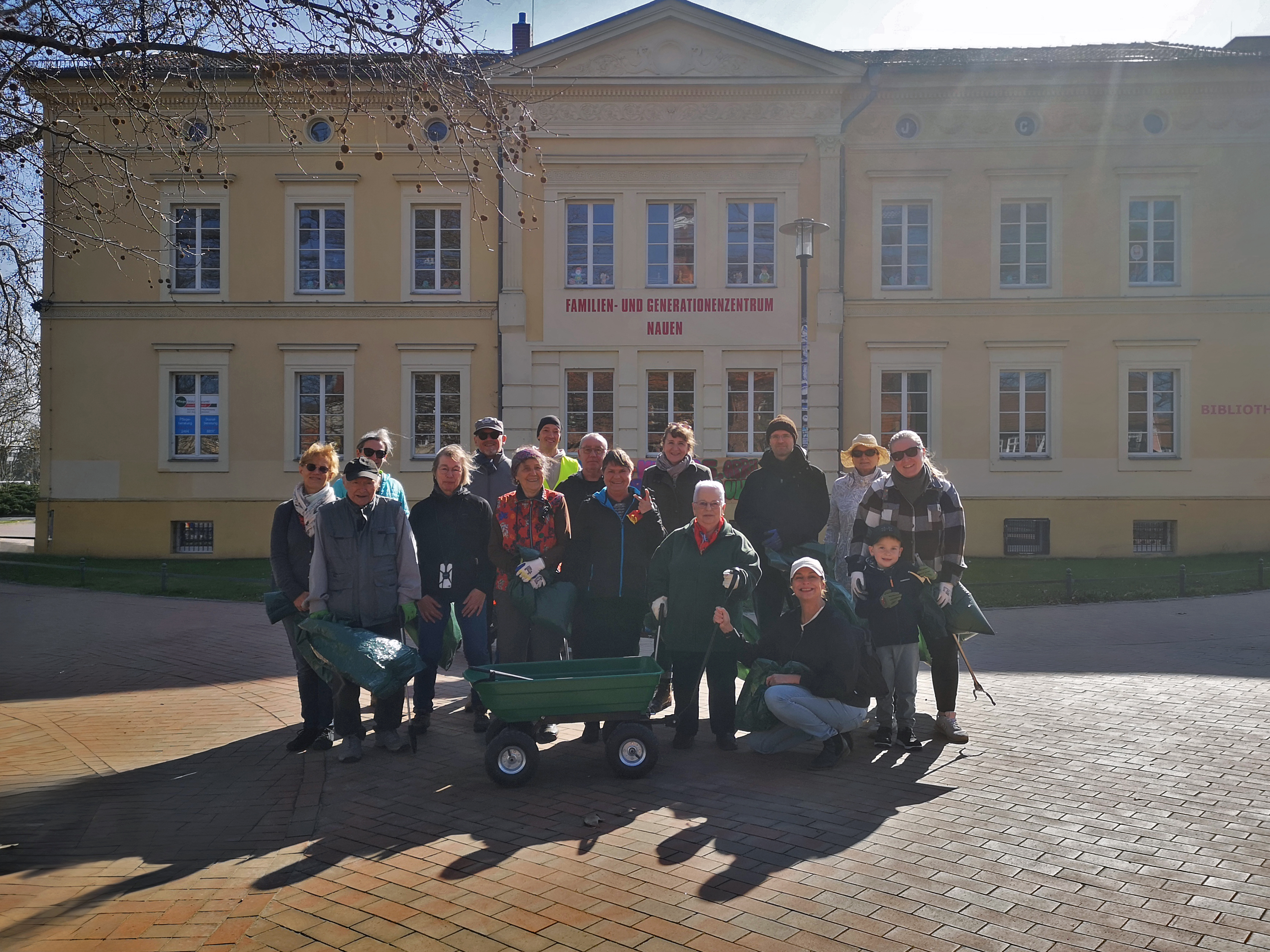 Der Treffpunkt ist um 14 Uhr am Rathausplatz in Nauen. Nach einer kurzen Einweisung werden verschiedene Sammelrouten aufgeteilt und die Reinigung in Gruppen durchgeführt. Müllsäcke, Zangen und Handschuhe werden vom Quartiersmanagement und dem FGZ Nauen gestellt. Dank der freundlichen Unterstützung der HAW Havelländische Abfallwirtschaftsgesellschaft mbH wird der gesammelte Müll im Anschluss fachgerecht entsorgt.