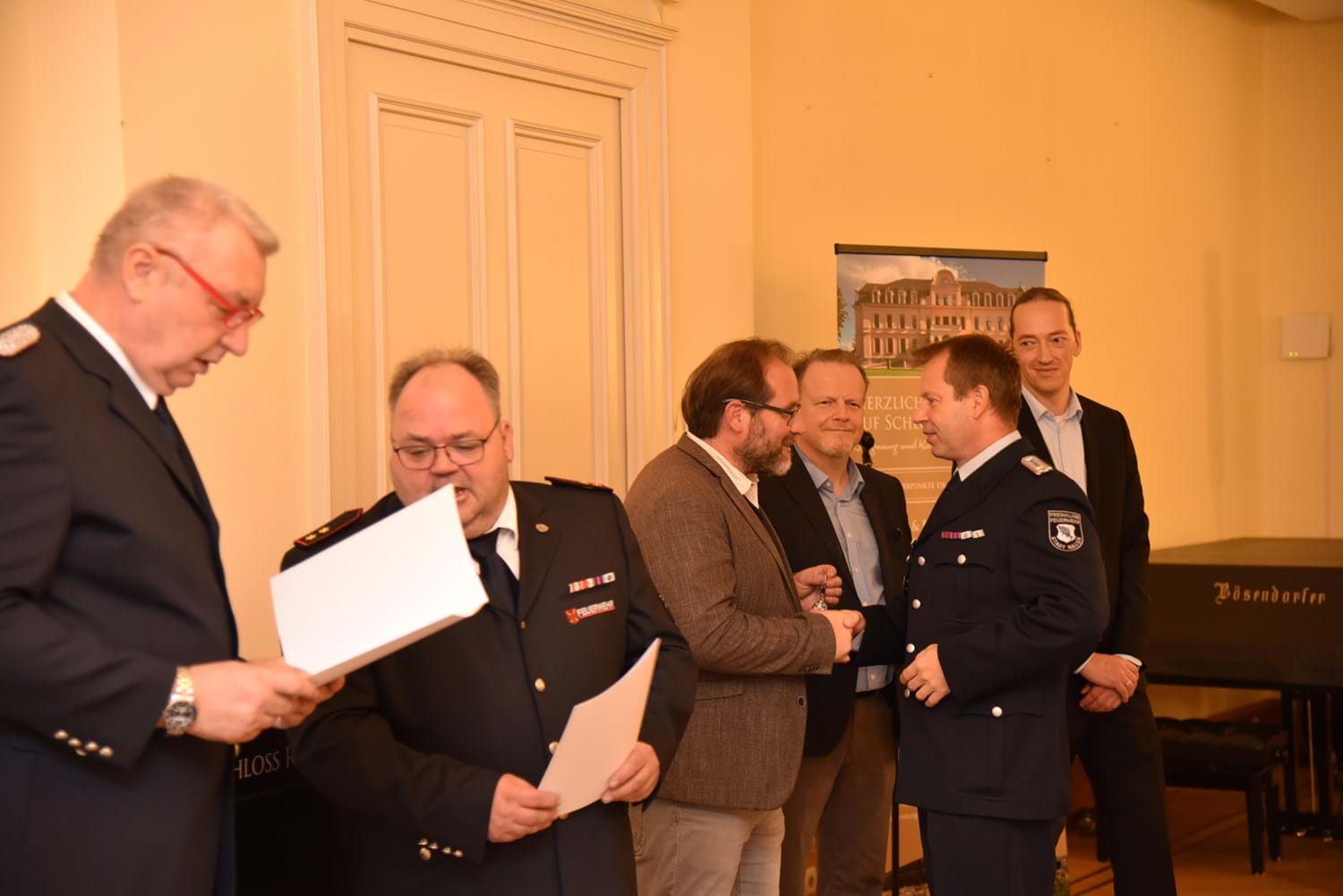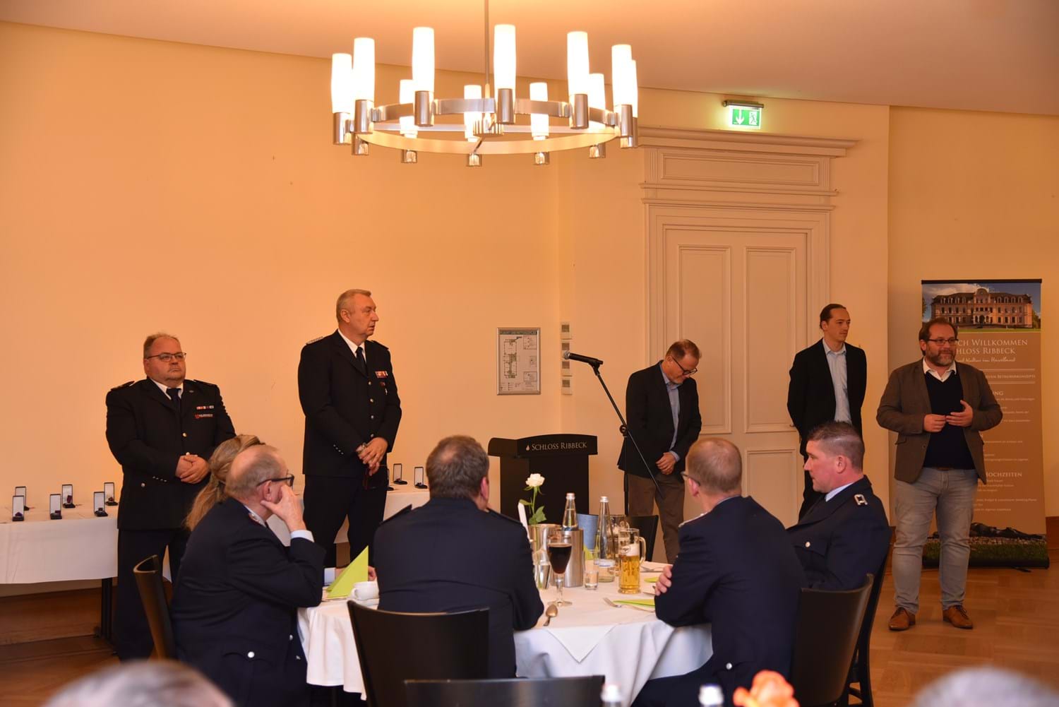 Eckart Johlige betonte, dass die Freiwilligen Feuerwehren nicht nur einen ‚wichtigen Anker‘ für die Sicherheit vor Ort darstellten. „Sie haben auch einen sehr hohen Stellewert für unsere Stadt- und Dorfgemeinschaften. Die Feuerwehren sind nicht mehr wegzudenken.“ Michael Wiebersinsky unterstrich: „Sie sind da, nicht nur zum Schutz unserer Bevölkerung, sondern auch als Teil und Träger unseres sozialen Lebens Unsere Freiwilligen Feuerwehren sind eine unverzichtbare Stütze des Gemeinwesens. Ihr Einsatz für die Sicherheit der Bürgerinnen und Bürger verdient größten Respekt und Dank. Diese Auszeichnung ist ein sichtbares Zeichen unserer Wertschätzung für viele Jahre ehrenamtlicher Arbeit – oft unter schwierigen und gefährlichen Bedingungen.“