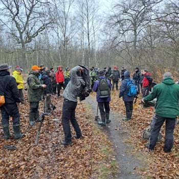 Bürgermeister Manuel Meger (LWN) nahm am Samstag (18.2.) gemeinsam mit rund 40 Teilnehmern an der Begehung im Nauener Stadtforst teil. Unter ihnen waren auch Lukas Goldmann vom Brandenburgisches Landesamt für Denkmalpflege und Archäologisches Landesmuseum BLDAM, der Nauener ehrenamtliche Bodendenkmalpfleger Daniel Dege und Robert Pritzkow (LWN) vom Ortsbeirat Börnicke.