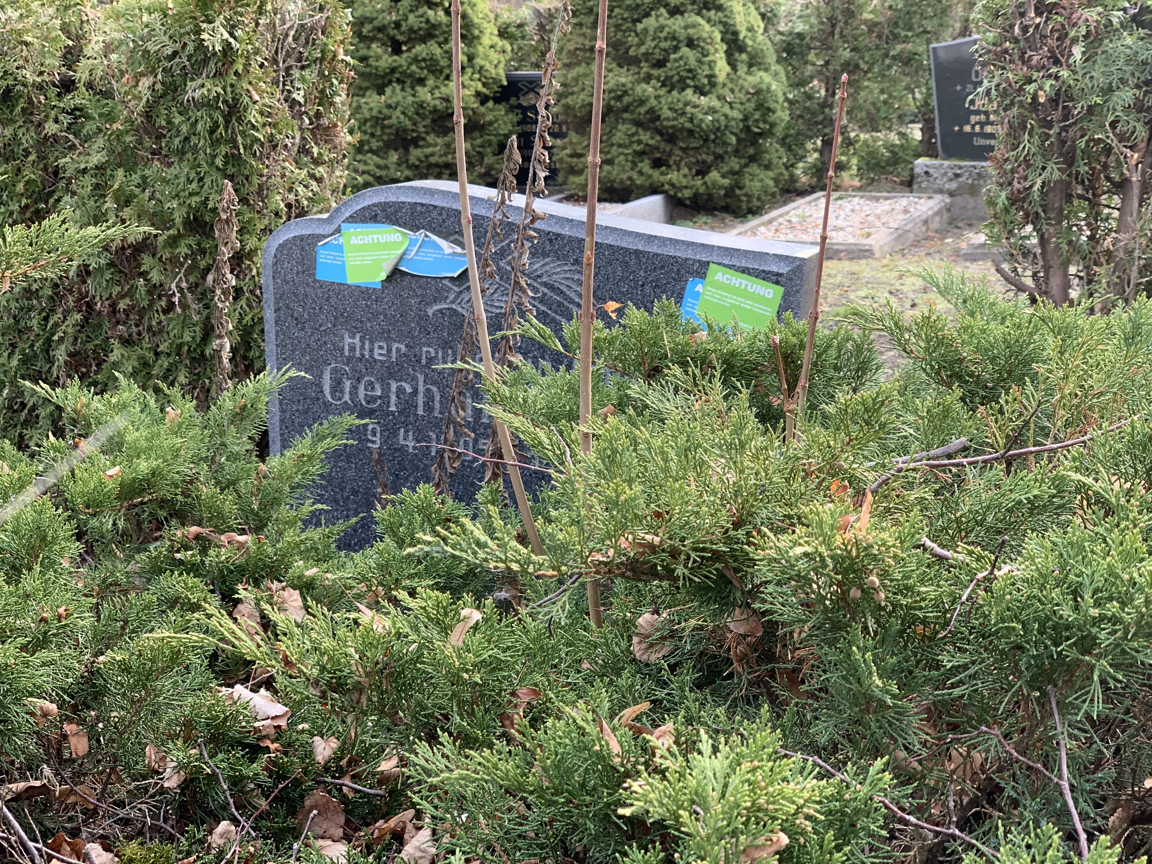 Die Überprüfung durch eine Fachfirma wird am 11.04.2025 durchgeführt. Ist die Standfestigkeit eines Grabsteines nicht gegeben, wird er mit einem Aufkleber versehen, der den Nutzungsberechtigten auf die Sicherungspflicht hinweist und andere Friedhofsbesucher warnt. Zuvor besteht für alle Grabnutzungsberechtigten die Möglichkeit, die Prüfung selbst durchzuführen und eventuelle Mängel abzustellen.
